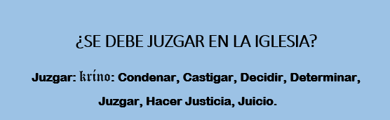 ¿SE DEBE JUZGAR EN LA IGLESIA? ¿SE DEBE JUZGAR EN LA IGLESIA? Juzgar: kríno: Condenar, Castigar, Decidir, Determinar, Juzgar, Hacer Justicia, Juicio. Mt 7:1-5 Ro. 2:1-3 Jn 7:23-24 1 Cor. 2:14-15 Para Señalar El Pecado 1 Cor.5:1-5 (El Incesto) Para No Ir A Los Tribunales 1 Cor 6:1-5 Para Disciplinar Y Sancionar 1